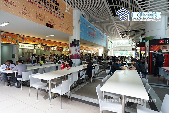 - Học sinh sẽ ăn tại Canteen của trường nằm ở dưới tầng 1 của KTX với các món ăn đa dạng học sinh có thể tự chọn. Trong trường có thư viện, phòng GYM (Học sinh mua thẻ) hoặc bể bơi bên cạnh trường (với chi phí rất rẻ).