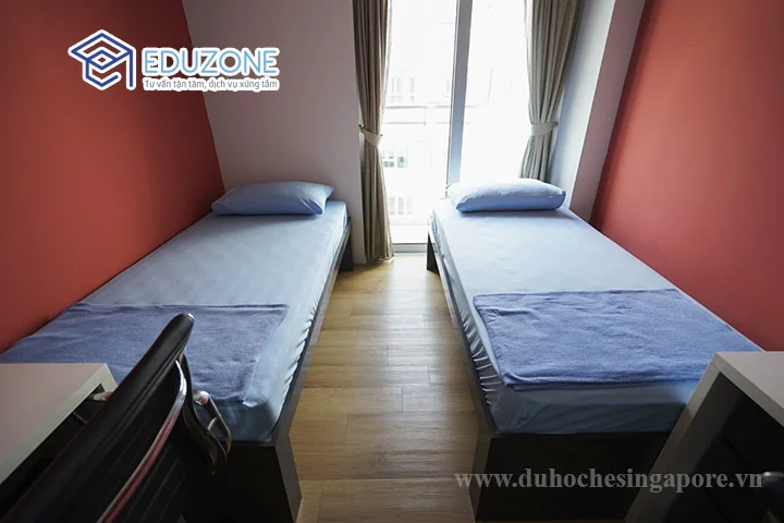 - Học sinh ở trong phòng đôi tiêu chuẩn (có khu vệ sinh riêng cùng tầng) trong KTX 15 tầng nằm trong khuôn viên của MDIS (Từ KTX lên giảng đường mất 2 phút).