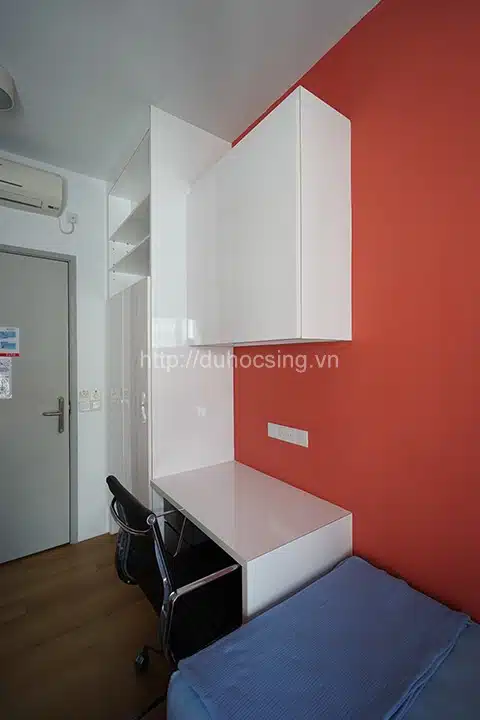 - Học sinh ở trong phòng đôi tiêu chuẩn (có khu vệ sinh riêng cùng tầng) trong KTX 15 tầng nằm trong khuôn viên của MDIS (Từ KTX lên giảng đường mất 2 phút).